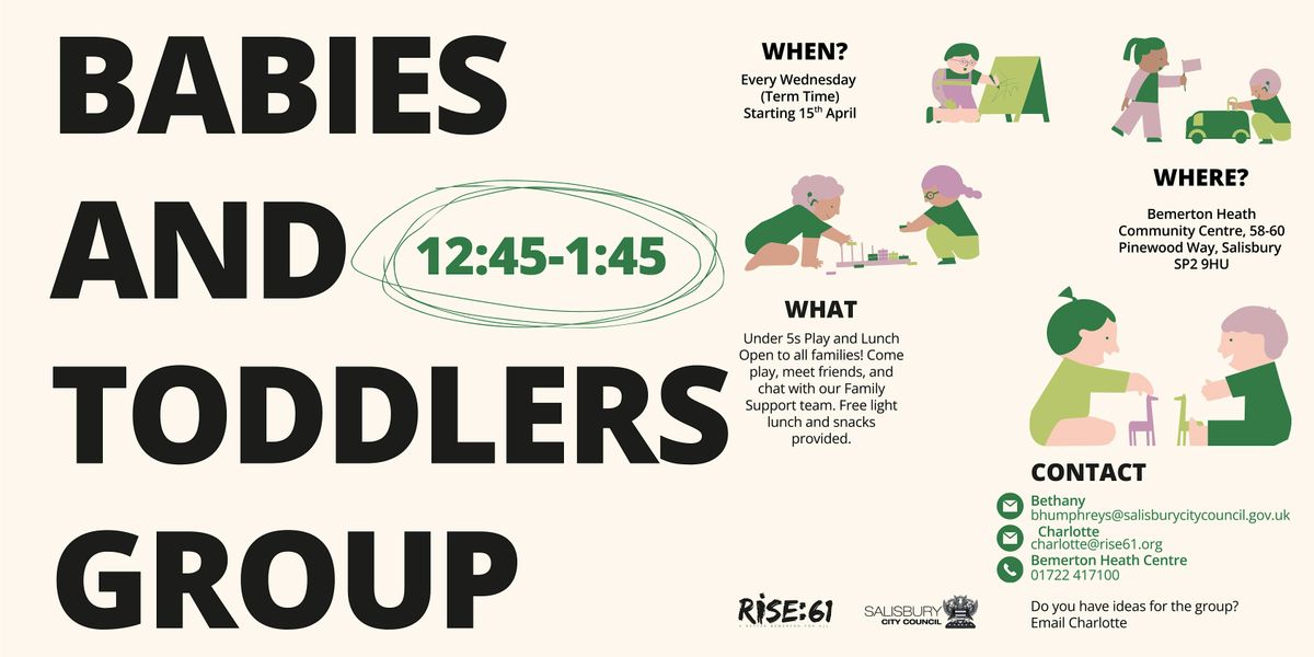 Baby & Toddler Group! Starts Apr 15, 12:45-1:45 at Bemerton Heath.For ages 0-5. Free lunch, play & support. Bring friends & scan to sign upAbout this Event