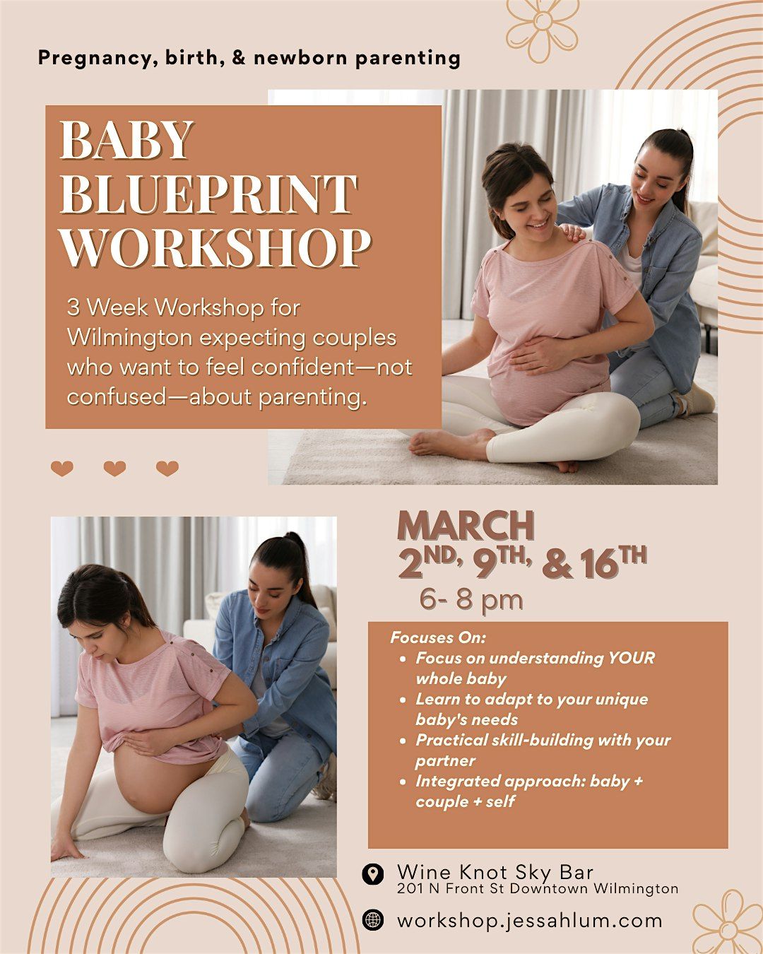 Join us in person for the Baby Blueprints Workshop! It's a practical workshop where you'll get hands-on tips and tricks to navigating the days leading up to, experiencing birth, and following those early days with your little one.