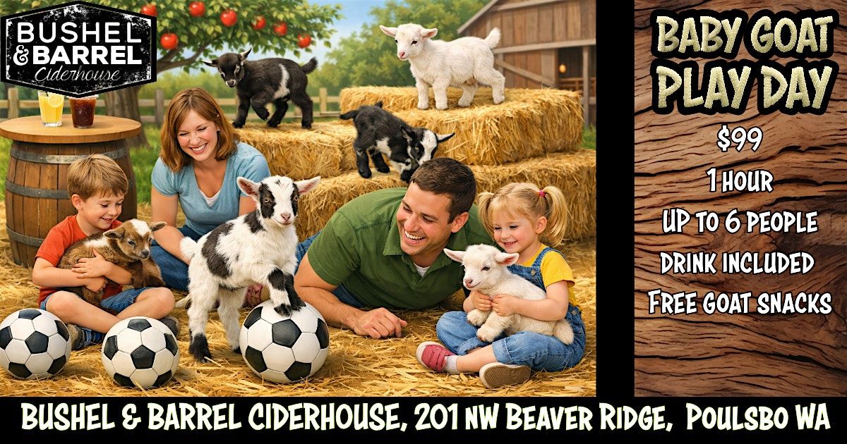 Join us at Bushel and Barrel Ciderhouse for Baby Goat Play Day, a one-hour interactive farm experience where youβll get hands-on time with our energetic, affectionate baby goats. They love to cuddle, climb, jump on backs, and play β and we canβt wait to share them with you!