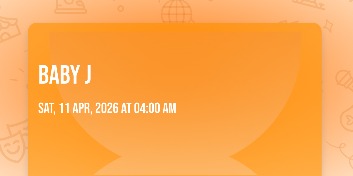 π Location: 37.7879, -122.422β¨ Enter a world of endless possibilities at Baby J, where every moment tells a story! ποΈ The stunning The Regency Ballroom in vibrant San Francisco, CA transforms into a realm of wonder on April 11th, 2026 at 04:00 AM. π They have crafted an experience that goes beyond the ordinary, combining elements of surprise, delight, and pure entertainment. Every detail has been thoughtfully considered to ensure your journey with us is nothing short of extraordinary. π― Join fellow adventure seekers and memory makers in this celebration of imagination and innovation. π Reserve your spot today and be part of something truly special!