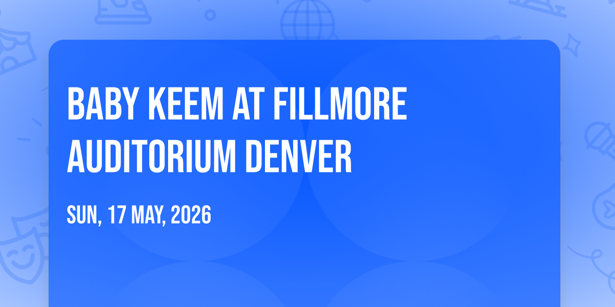 ✨ Discover the extraordinary at Baby Keem at Fillmore Auditorium Denver, where magic meets reality in ways you've never imagined! 🏛️ Set in Fillmore Auditorium Denver nestled in bustling Denver, CO, this event promises to be a landmark occasion. 📅 Taking place on May 17th, 2026 at 07:30 PM, it's going to create an atmosphere where every moment becomes a cherished memory. 🌟 Immerse yourself in an experience crafted with attention to every detail, designed to surprise and delight at every turn. They have worked tirelessly to ensure this event exceeds all expectations, bringing together elements of entertainment, innovation, and pure joy. 🎊 Don't miss your chance to be part of this remarkable journey!