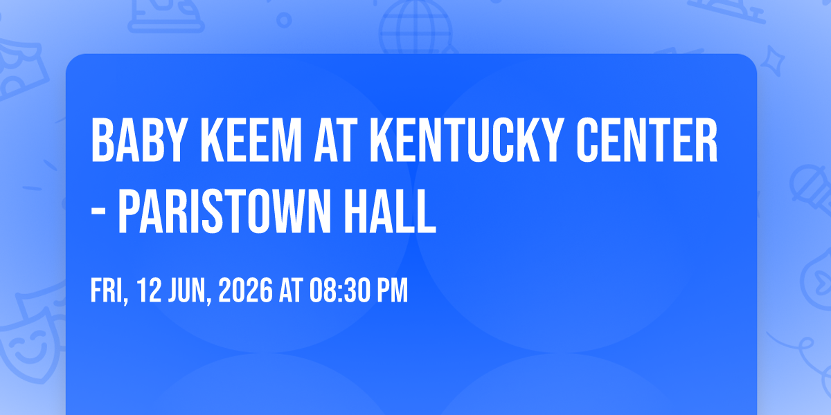🎉 Prepare to be amazed at Baby Keem at Kentucky Center - Paristown Hall, the most anticipated gathering of the season! 🌟 Set against the stunning backdrop of Kentucky Center - Paristown Hall in vibrant Louisville, KY, this event promises to redefine your expectations. 📅 Mark your calendars for June 12th, 2026 at 08:30 PM and get ready to immerse yourself in an atmosphere of wonder and excitement. ✨ From the moment you arrive, you'll be transported into a world where memories are made and stories come alive. They have crafted an experience that perfectly harmonizes entertainment, innovation, and community spirit. 🌈 Join us as we create moments that will be discussed for years!