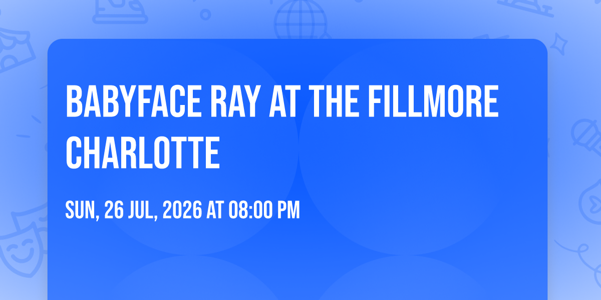 🎉 Prepare to be amazed at Babyface Ray at The Fillmore Charlotte, the most anticipated gathering of the season! 🌟 Set against the stunning backdrop of The Fillmore Charlotte in vibrant Charlotte, NC, this event promises to redefine your expectations. 📅 Mark your calendars for July 26th, 2026 at 08:00 PM and get ready to immerse yourself in an atmosphere of wonder and excitement. ✨ From the moment you arrive, you'll be transported into a world where memories are made and stories come alive. They have crafted an experience that perfectly harmonizes entertainment, innovation, and community spirit. 🌈 Join us as we create moments that will be discussed for years!