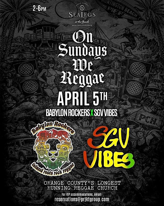 Come see Babylon Rockers X SGV Vibes at 2pm on April 5h. All ages welcome. For VIP reservations email [email protected]