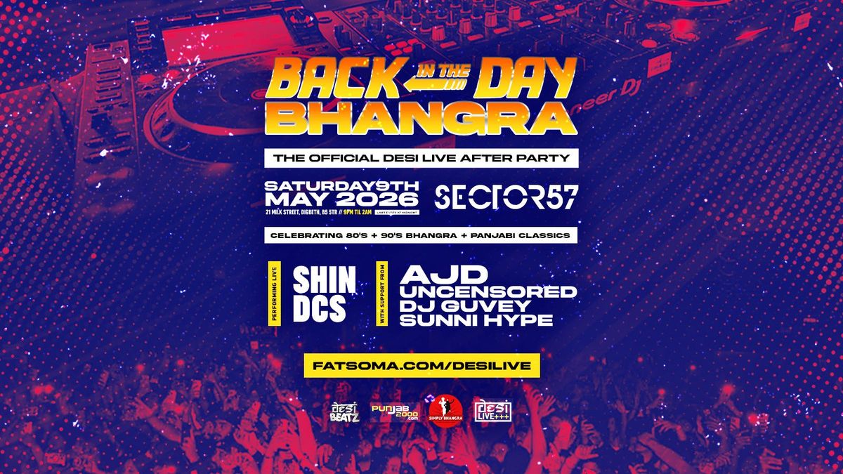 BACK IN THE DAY BHANGRATHE OFFICIAL DESI LIVE AFTERPARTY!Celebrating 80's + 90's Bhangra + Panjabi Music!@Sector 57, 21 MILK STREET, DIGBETH, BIRMINGHAM, B5 5TRSATURDAY 9th MAY 20269PM - 2AM (LAST ENTRY MIDNIGHT!)The team behind Desi Live present an exclusive, limited capacity event immediately after the SOLD OUT show at XOYO! Expect the vibes you've come to expect from our stage shows in an intimate setting featuring incredible music, musicians & like-minded party goers celebrating the golden era of Panjabi music & culture! We take you 'BACK IN THE DAY' to those glorious memories of sneaking out to daytimers, hiding your change of clothes & taking multiple buses to get to venues miles away to hear the music you adored!We've handpicked the awesome SECTOR57, a 600 capacity multi-faceted events space in DIGBETH (JUST 8 MINS WALK FROM XOYO!) so you can keep the party going until the early hours!LIVE On The Night..