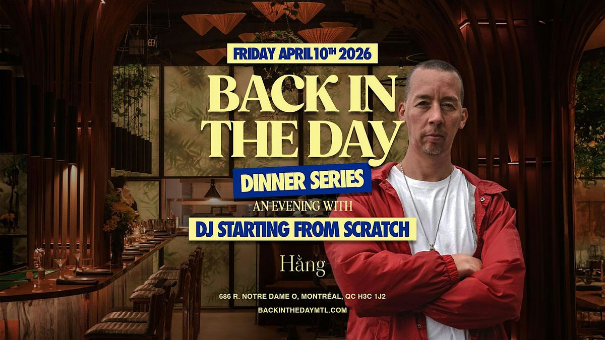 Back In The Day is proud to present An Evening with DJ Starting From Scratch, Friday, April 10, 2026 at Hang in Old Montreal.