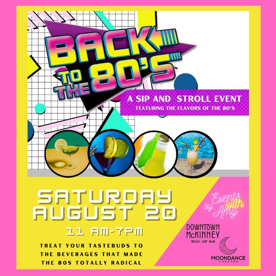 Schweet! Like, a totally bodacious event is happening in Downtown McKinney on Saturday, August 20th!Pull out your acid washed jorts and aqua net hair spray for our most choice Sip n Stroll event featuring flavors of the 80's. Participants will receive a souvenir sampling cup and a map with 20+ locations offering tastes from the 1980s, including popular drinks like: