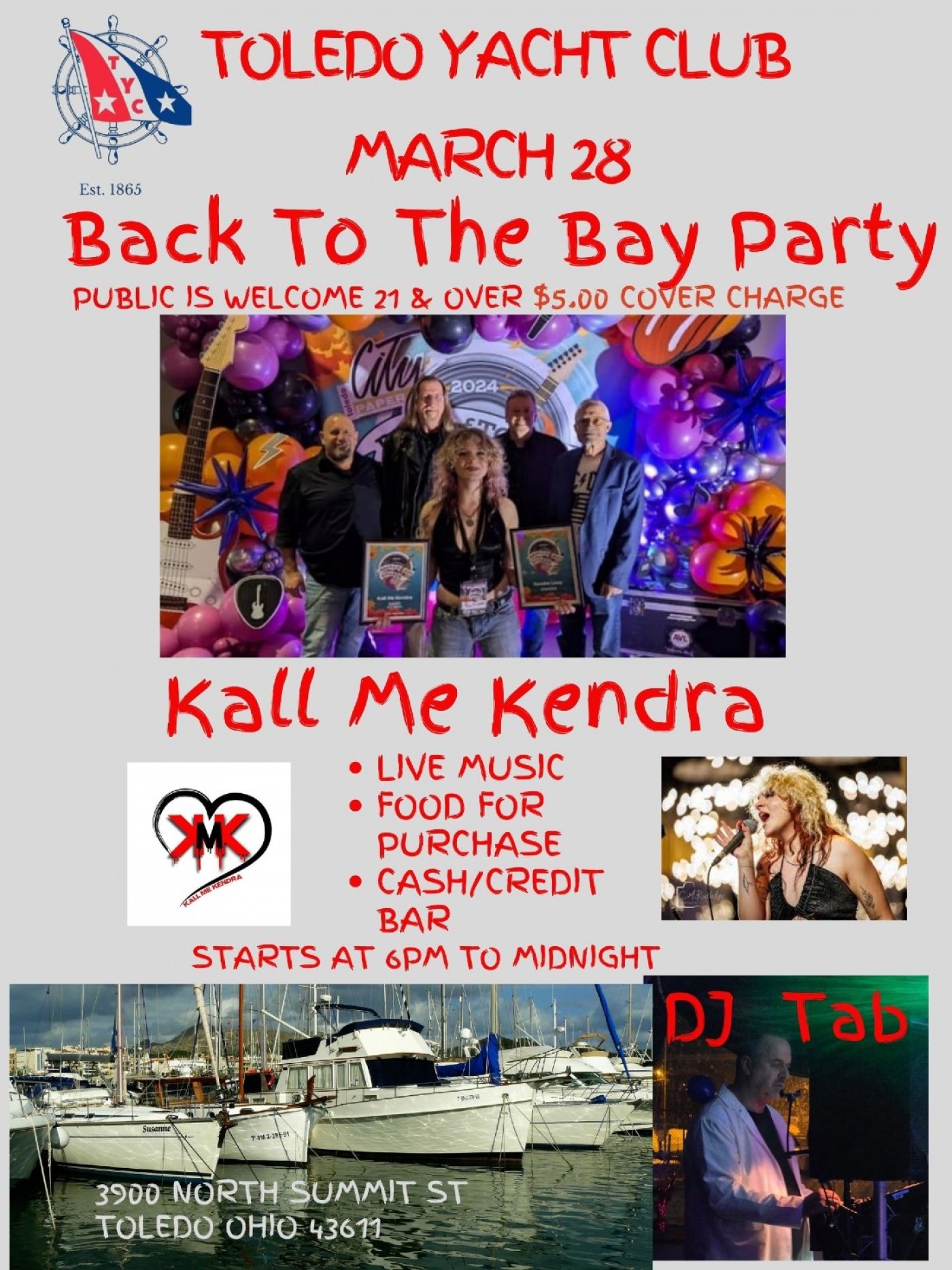 Back to the Bay party at the Toledo Yacht Club (TYC) Saturday, March 28,2026, starts at 6:00 PM. This is our "boating kickoff" party and is open to the public, as well as members of the AYC, I-LYA, and DRYA.