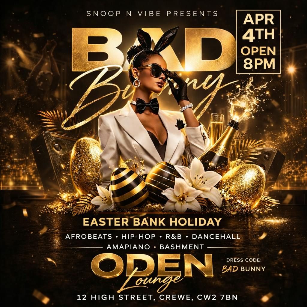 Get ready for the ultimate Easter Bank Holiday celebration as Snoop N Vibe presents BAD BUNNY — a glamorous night of high energy vibes, luxury aesthetics, and non-stop music.Step into a gold-drenched party atmosphere where style meets sound. Expect nothing but the best in: