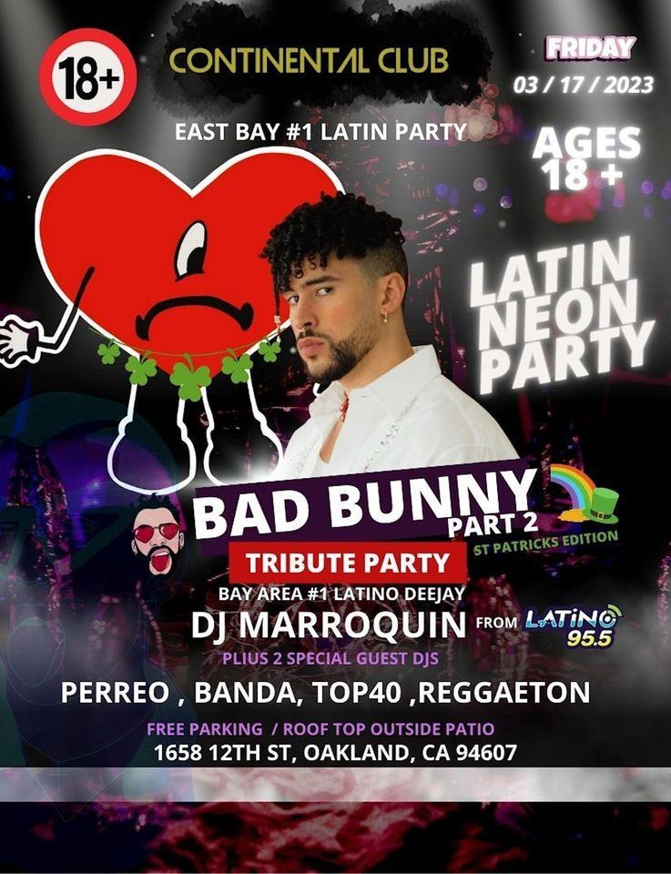 We are bringing you another awesome Bad Bunny Latin Neon Party Reggaeton, Merengue, HipHop,Banda , Ages 18 & UPContinental Club one of the Best Music Venue! In Oakland