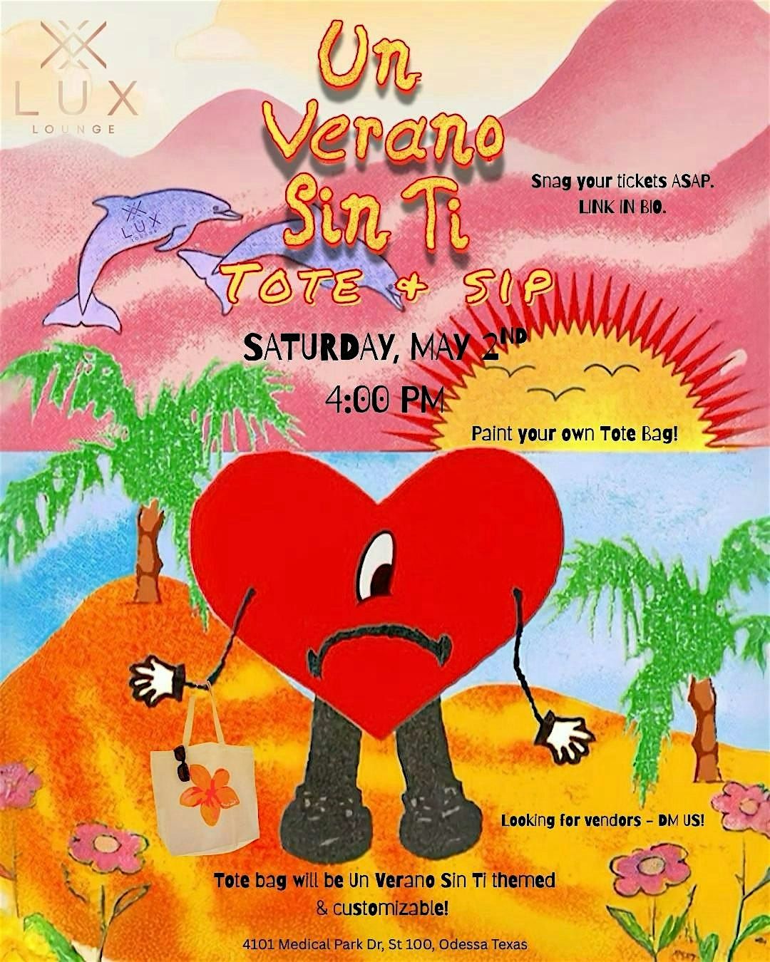Create the perfect Verano accessory by painting custom tote bags inspired by the dreamy, colorful aesthetic of Un Verano Sin Ti . Led live by the artistic Victoria Eaton with plenty of room for you to add your own creative twist.