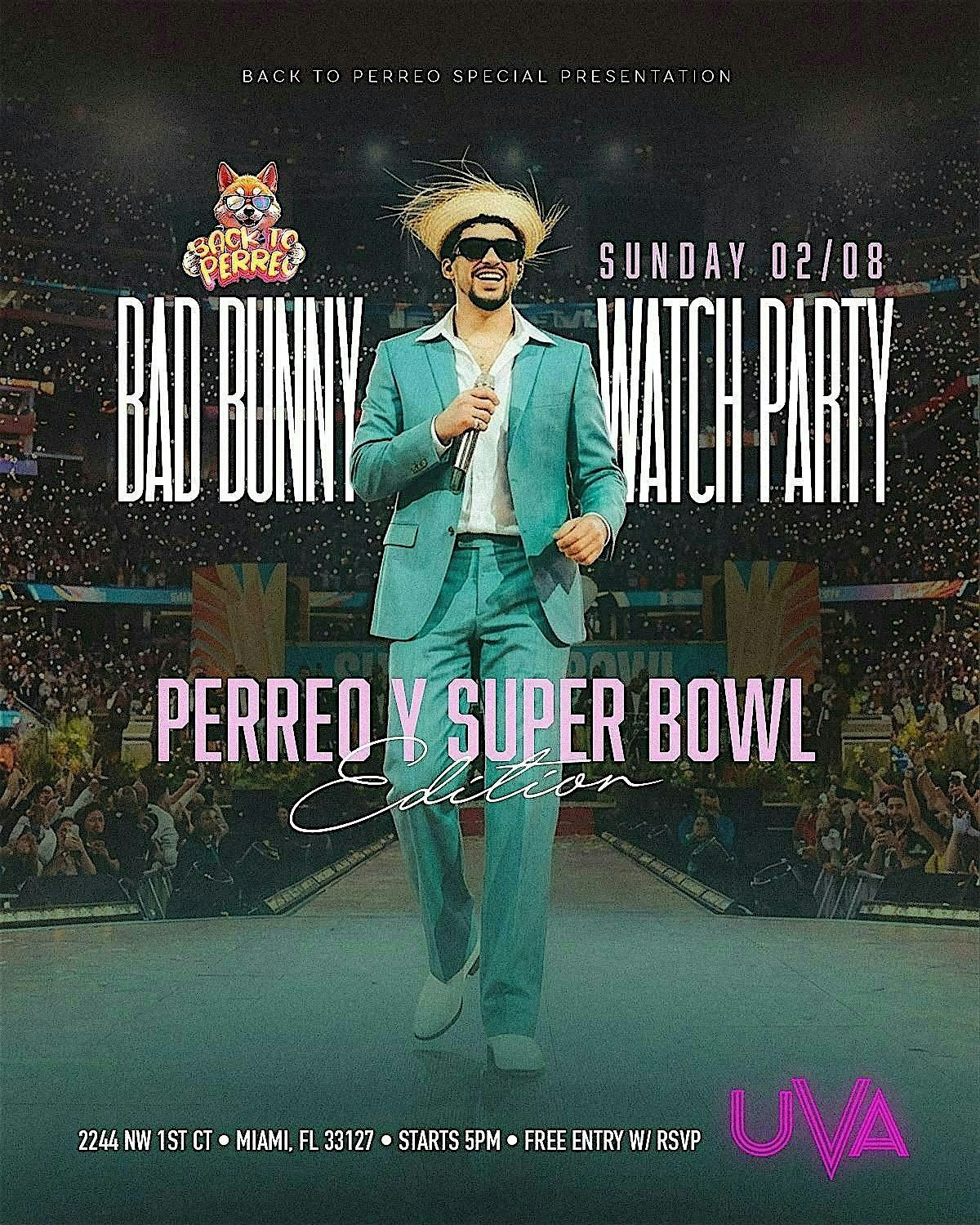 Come watch Bad Bunny's Historic performance on our giant LED Screen at UVA ! Superbowl & Perreo featuring DJ Africa & DJ C !