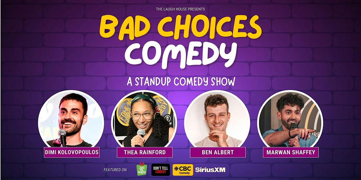 The Laugh House presents BAD CHOICES COMEDY - Toronto's go-to weekend comedy show! The funniest stories start with terrible decisions. Come laugh at comedians exposing their worst life choices! Make your night memorable and reserve your tickets in advance to guarantee your seats!