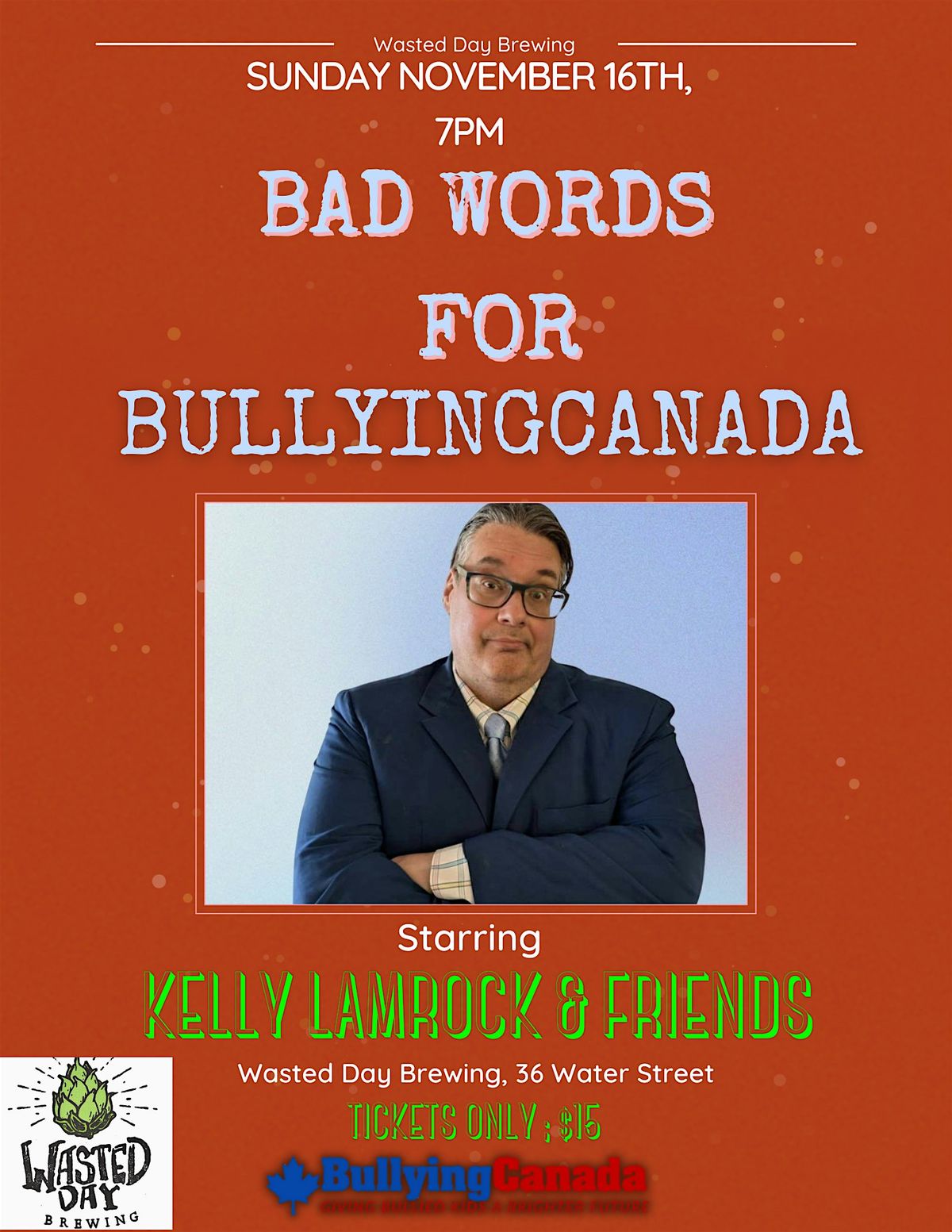 Welcome to Bad Words for BullyingCanada: Stand Up For Charity event! Join us at Wasted Day Brewing on November 16, 2025 at 7:00 PM (Atlantic Time) for a night of great comedy for a great cause.