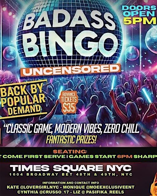 “Classic game, modern vibes, zero chill. NYC, are you ready? BADASS BINGO - UNCENSORED - is taking over CIRCO Nightclub for a night of wild energy, unexpected twists, and bingo uncensored. No matter who you are, you’re welcome at this table. Food menu available & cash bar