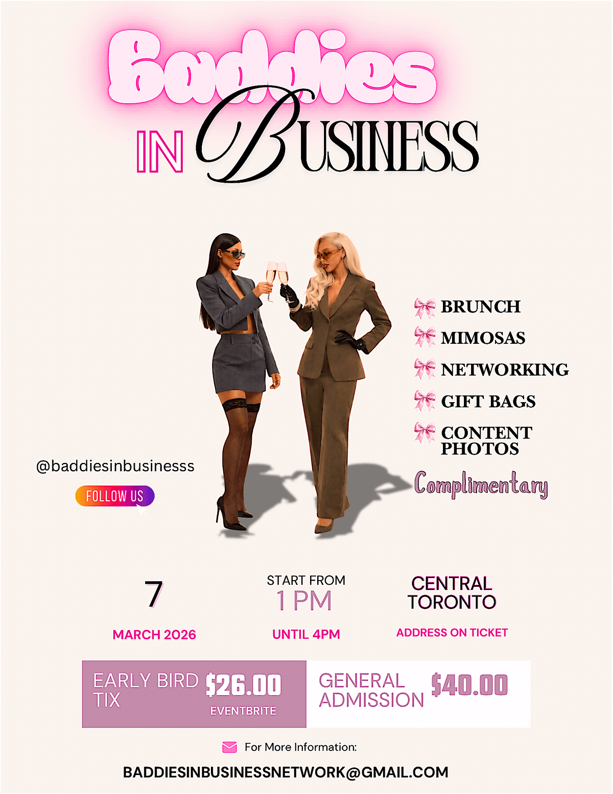 Baddies In Business is a social brunch and networking experience created for women entrepreneurs and creatives ; looking to connect , build relationships and enjoy a fun welcoming atmosphere.