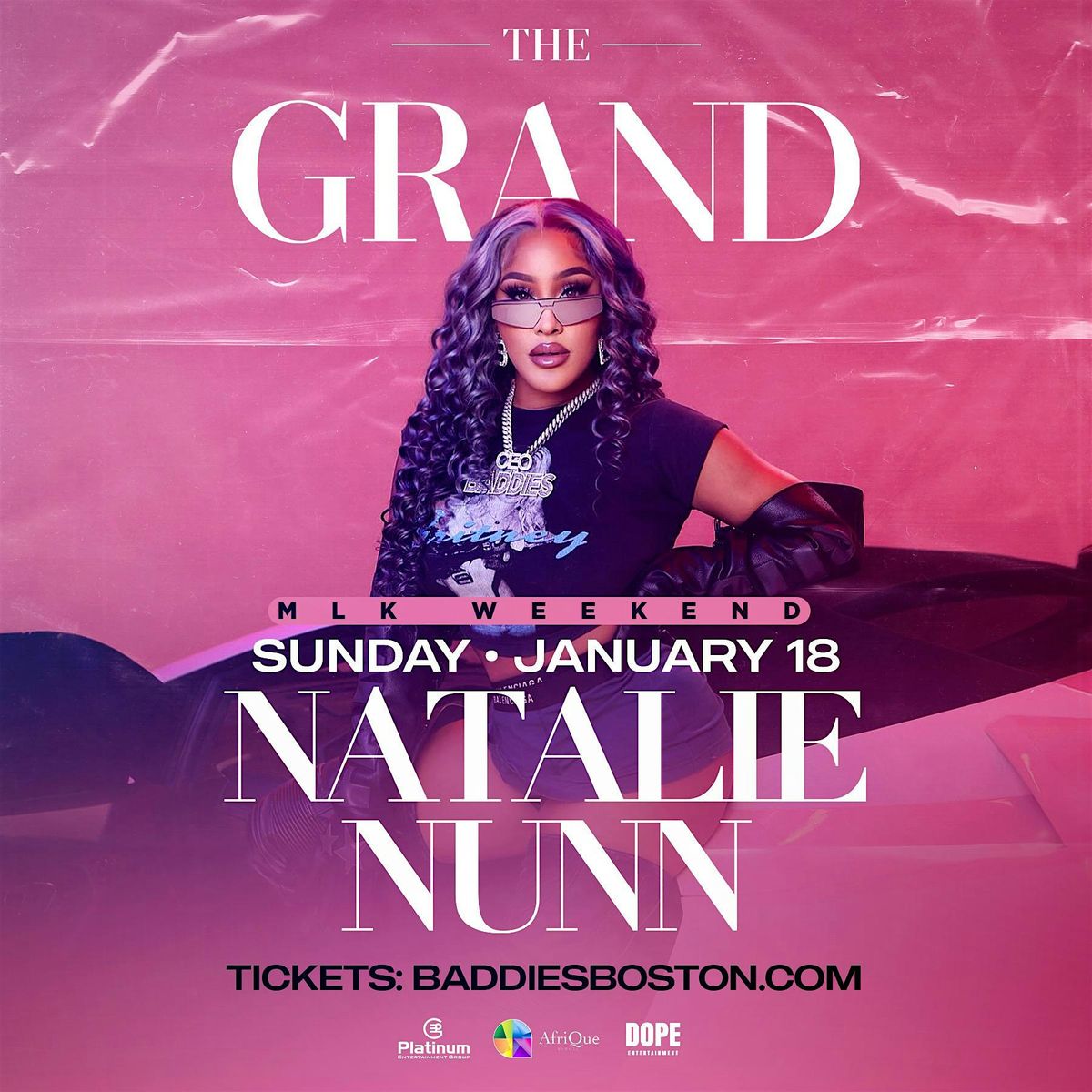 Welcome to the party of the year! Get ready to party with the one and only Baddies NATALIE NUNN at The Grand Boston on January 18, 2026 at 10:00 PM (Eastern Time). It's going to be a night to remember filled with music, dancing, and good vibes. Don't miss out on this epic event!