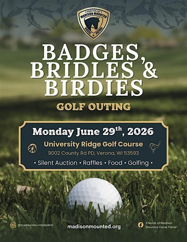 Join us for a one-of-a-kind golf outing at Badges, Bridles, and Birdies, a fun and meaningful fundraiser benefiting the Madison Police Mounted Unit.