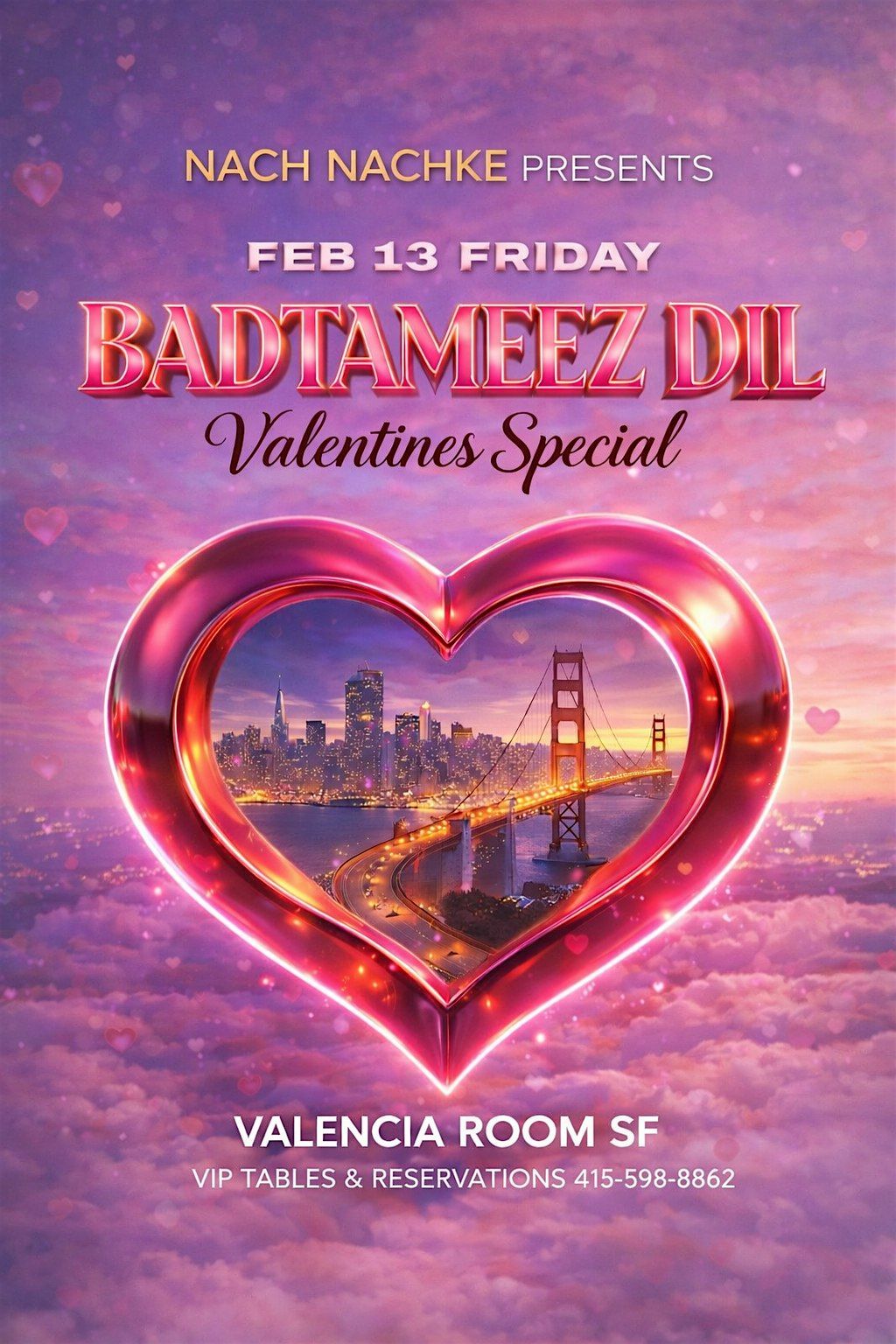 BADTAMEEZ DIL - Join us for a Valentines Special Night of non-stop dancing on February 13th! Get ready to reconnect with your roots as we bring you the best of traditional and contemporary beats. Our talented DJs will spin a mix of Bollywood, Punjabi, and Hip-Hop music accompanied by a live dholi player.
