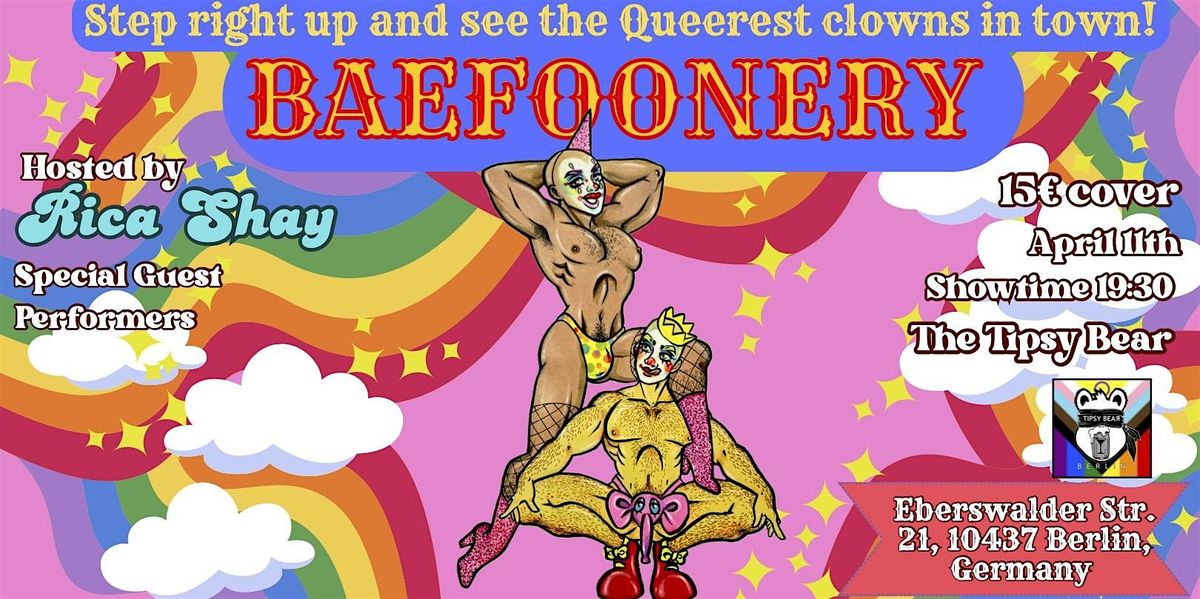 Hey fabulous, glitter-loving queers! Get ready for Beafoonery, the hottest ticket in town! A clown-themed Cabaret show, originally from San Francisco, is back in Berlin!! Join us on at Tipsy Bear for an unforgettable night of laughter and joy!