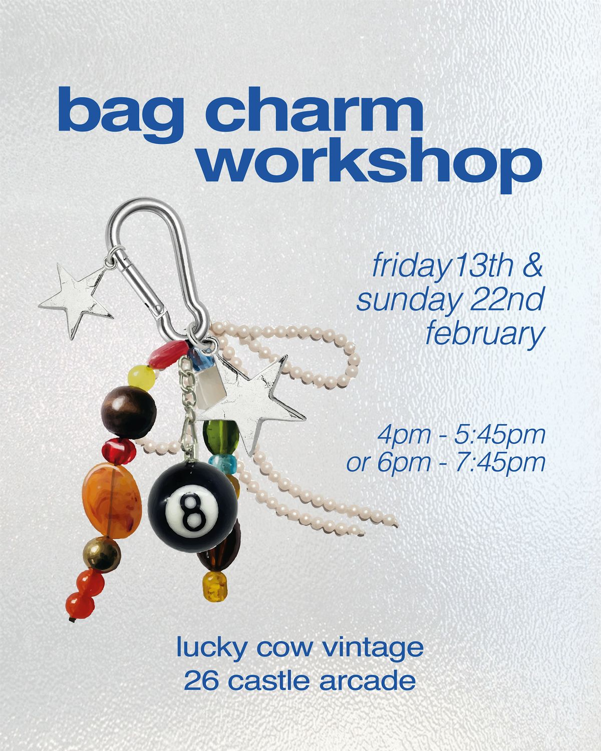 join us at Lucky Cow for a cute, creative bag cham workshop, where you’ll design and make your own one-of-a-kind charm to personalise your favourite bag!