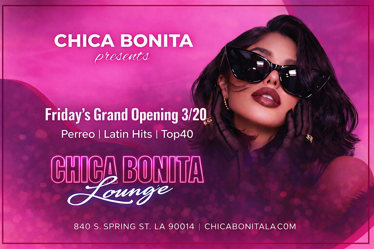Celebrate the Grand Opening of Chica Bonita Lounge Fridays in the heart of Downtown Los Angeles.Experience the best of Perreo, Latin Hits and Top 40 as we bring together great music, great energy, craft cocktails, full bar and an exciting crowd ready to celebrate. Whether you're coming to dance with friends or discover a new nightlife destination in DTLA, this is the place to be.