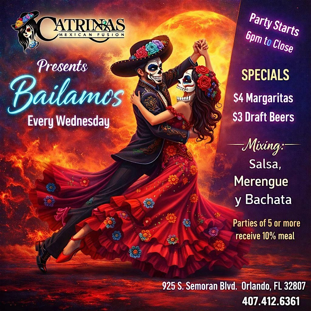 Join us on Wednesdays, when Catrina's Mexican Fusion hosts "Bailamos" from 6:00 PM until closing. Enjoy fantastic food and drink specials. It's a perfect way to relax post-work with great drinks, dining, and tunes......