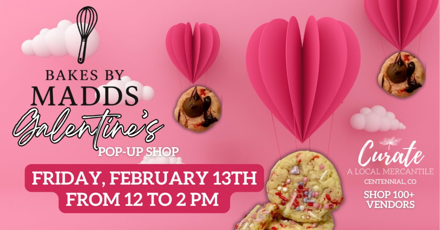 Grab your besties and head to Curate Mercantile in Centennial for a special Galentine’s Day pop-up with Bakes by Madds on Friday, February 13th from 12–2 PM!