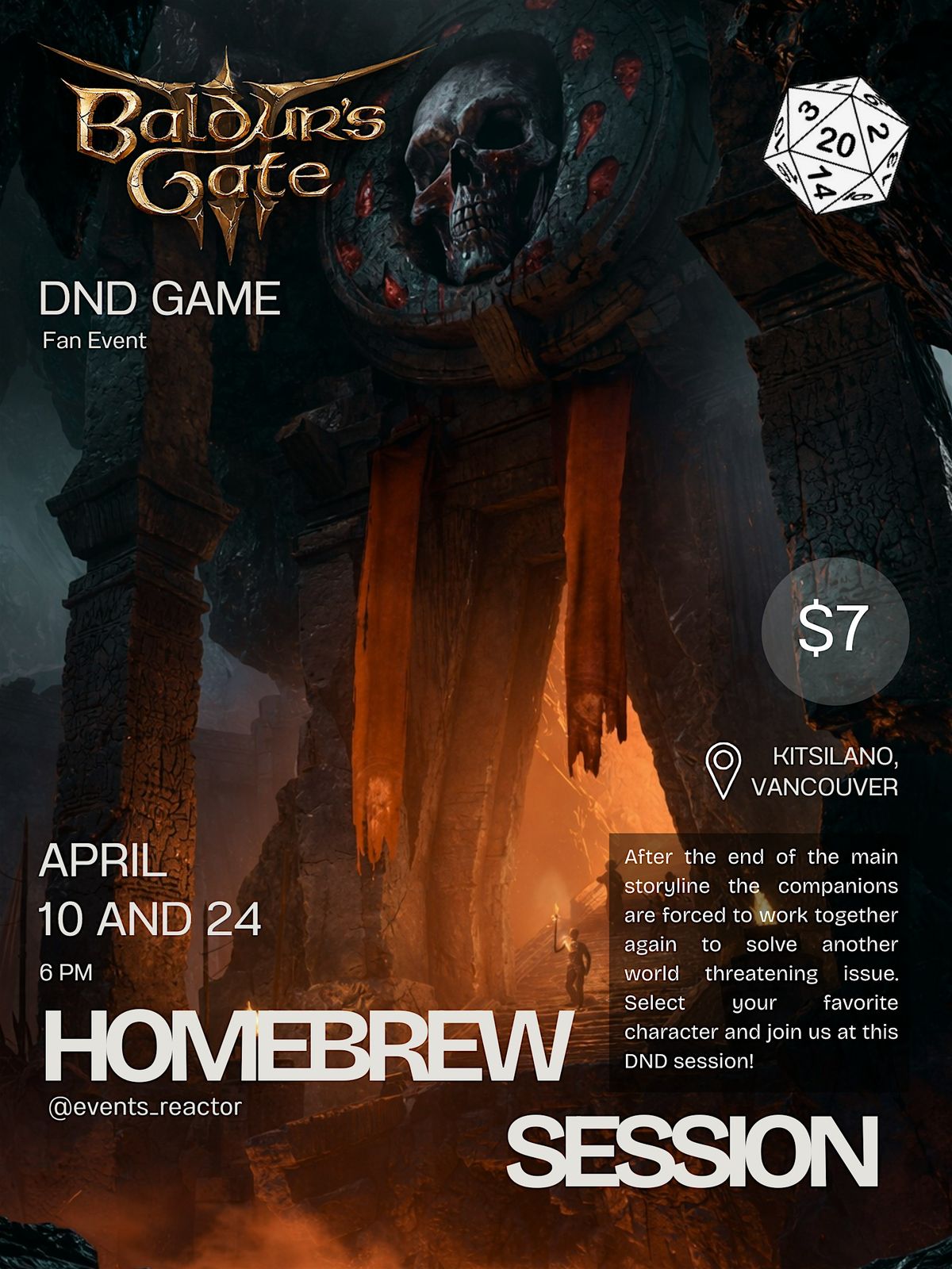 After the end of the main storyline the companions are forced to work together again to solve another world threatening issue. The game is expected to last 3-4 hours, your own food and drinks are welcome. There is a big store located right across the street in case you would like to buy something during our short break.