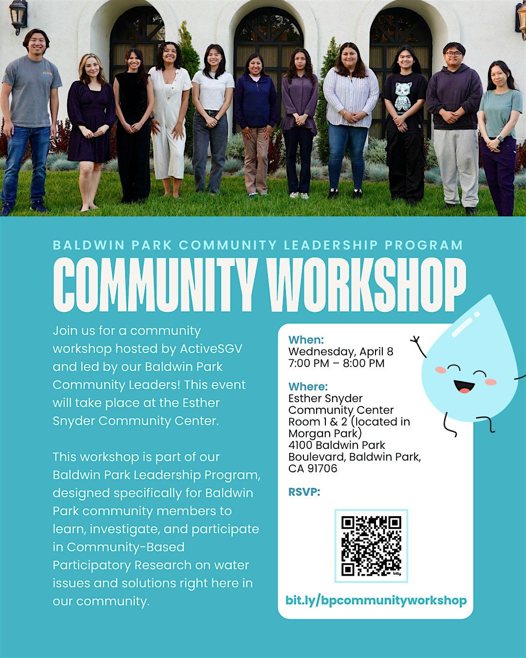 Join us for a community workshop hosted by ActiveSGV and led by our Baldwin Park Community Leaders! This event will take place at the Esther Snyder Community Center.