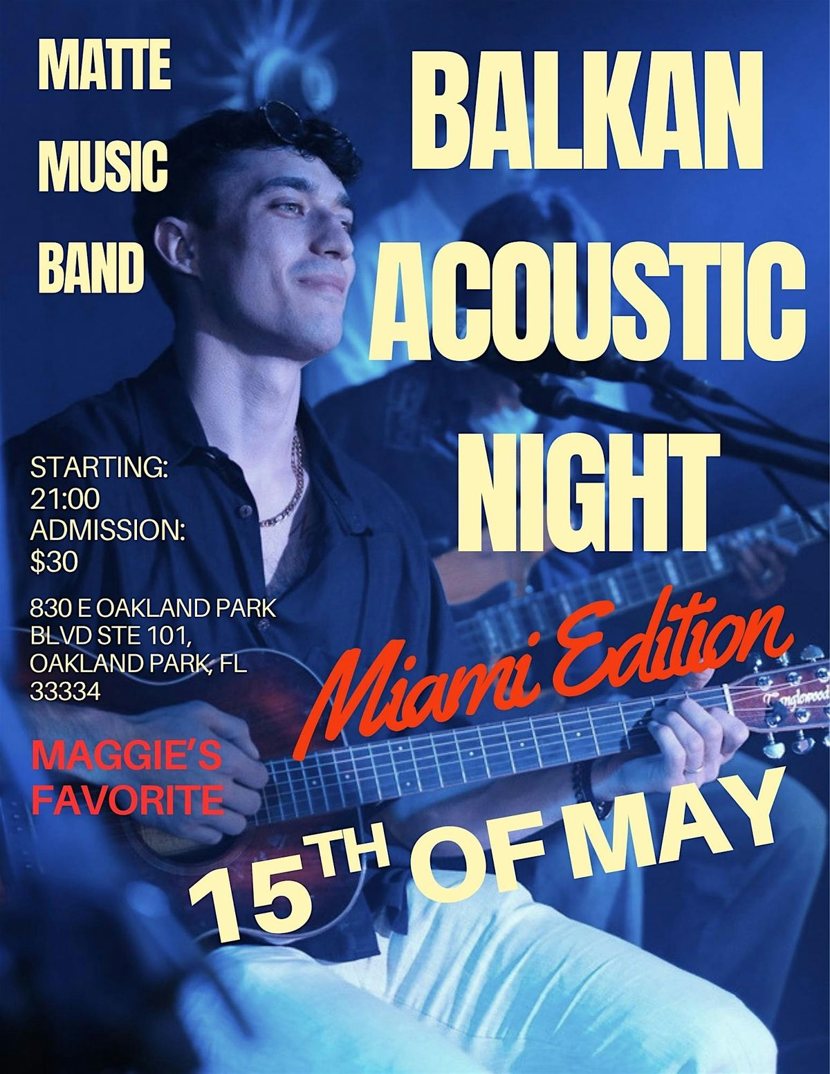 Get ready for an unforgettable evening of live tunes! Join us in person for a Balkan Acoustic Night filled with soulful melodies and vibrant rhythms. Matte Music will take you on a musical journey you won’t want to miss. Bring your friends, feel the vibe, and let the music move you!