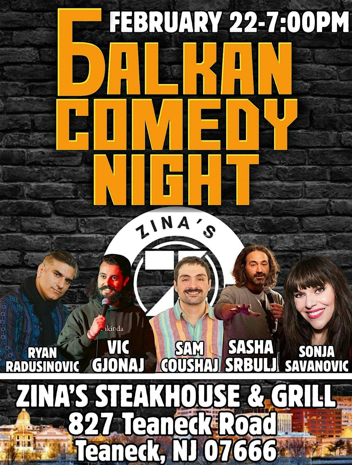 Get ready to laugh out loud at the Balkan Comedy Night Saturday! Join us in person for an unforgettable evening filled with hilarious jokes and stories straight from the heart of the Balkans. The show features the funniest Balkan comedians from around the United States, Canada, and of course The Balkans! The night of comedy will be hosted by Vic Gjonaj (LA) and feature Sam Caushaj (NY), Sonja Savanovic (NY), feature act Sasha Srbulj (NY Comedy Fest) and nationally-touring headliner Ryan Radusinovic (CBS, Amazon) It's the perfect way to chill, enjoy great company, and catch some top-notch comedy talent. Don't miss out on this fun night—come hang out at our jokes, stories, and shared experiences! Bring your own burek! The show is in English with Balkan references. Doors will open at 6:30 and the show will start at 7:15.