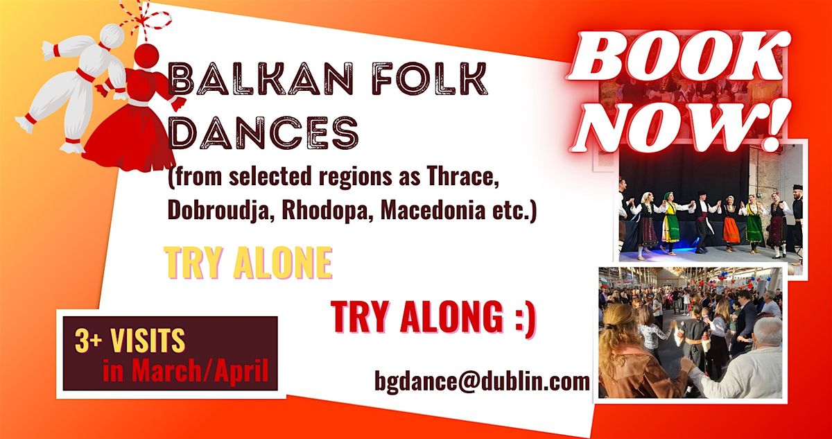 Balkan folk dances in Dublin. No partner required. Try in March/April !