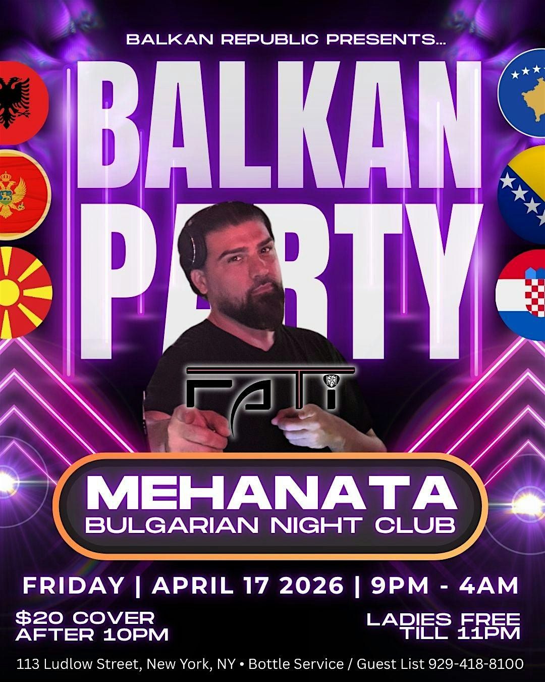 Get ready for a wild Friday night of nonstop Balkan energy at Mehanata Bulgarian Night Club in the heart of New York City. Join us on Friday, April 17, 2026 for a high-energy party featuring Fati and the best Albanian, Bulgarian, Romanian, Turkish and Greek sounds all night long.