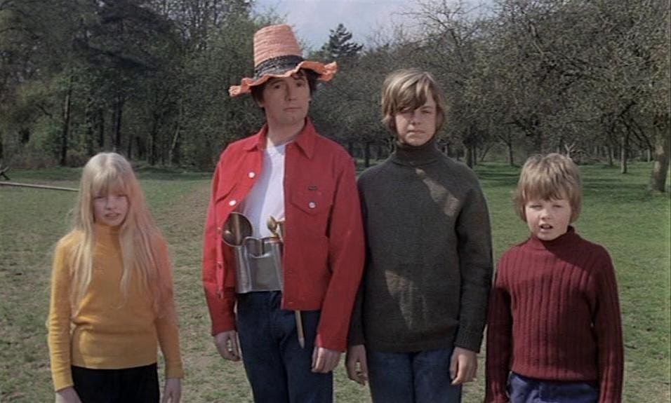This gloriously odd, gently subversive comedy from the Children’s Film Foundation sees cosmic hobo Kadoyng – blessed with mysterious powers and a stalk-like appendage on his head - arrive unexpectedly on earth, to befriend local residents, and take on nasty politicians and road developers. Wittily written by Leo Maguire, who stars as Kadoyng, this is 1970s CFF at its weirdest, wackiest best.
