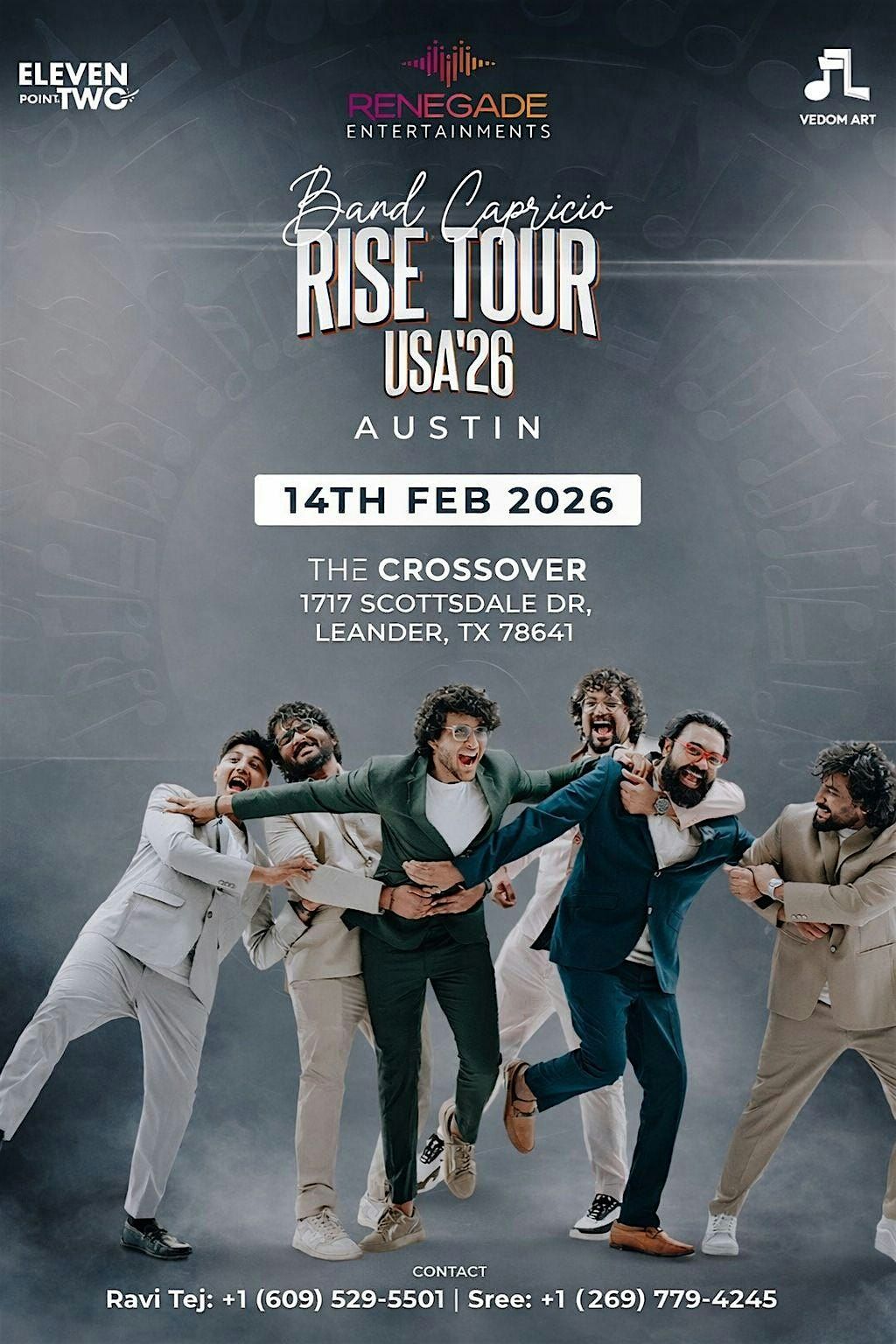 Get ready for an unforgettable night as Band Capricio, Hyderabadβs most celebrated and electrifying live music band, brings their RISE TOUR USA β26 to Texas!