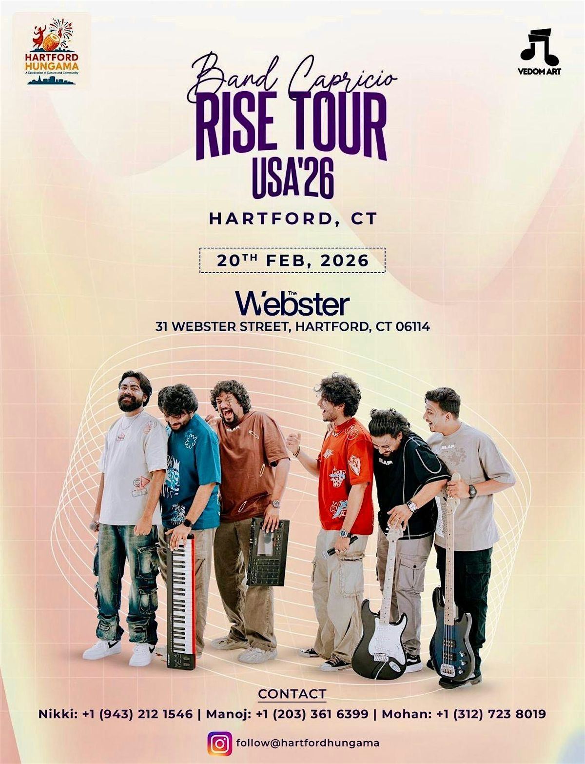 Hartford Hungama brings Band Capricio to Hartford as part of their Rise Tour USA ’26 for one unforgettable night of live music. Known for their high-energy performances and dynamic sound, Band Capricio delivers an electrifying concert experience that keeps the crowd engaged from start to finish.