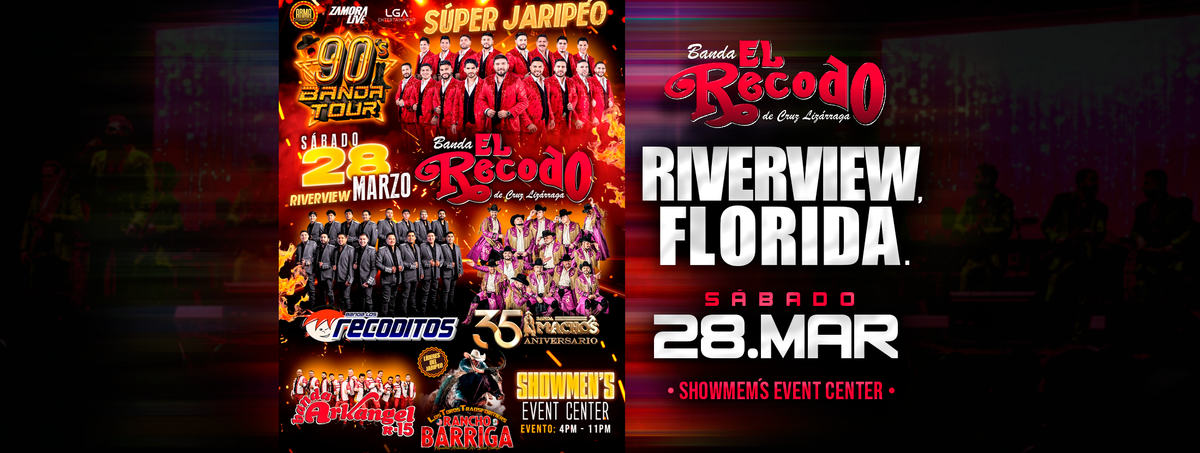 Don't miss BANDA EL RECODO, BANDA LOS RECODITOS & MAS happening at Showmens Event Center, Riverview, FL, United States on 2026-03-28T16:00:00-05:00. A great evening with good music and a laid-back atmosphere awaits you. Invite your friends for a night out! **Event Details:** * **Location:** Showmens Event Center, Riverview, FL, United States Book your attendance today and be part of something extraordinary. #BANDAELRECODO,BANDALOSRECODITOS&MAS #event #exciting #RiverviewEvents #FLEvents