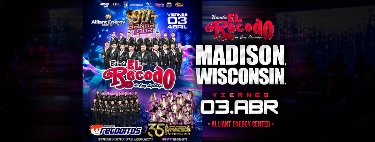 **Attend BANDA EL RECODO, BANDA LOS RECODITOS & MAS at Alliant Energy Center Arena , Madison, WI, United States** Join us for BANDA EL RECODO, BANDA LOS RECODITOS & MAS . It's going to be a fun and relaxed event with great music and good company. A perfect way to spend your evening. **Event Details:** * **Location:** Alliant Energy Center Arena , Madison, WI, United States Register now to secure your spot at this landmark event. #BANDAELRECODO,BANDALOSRECODITOS&MAS #event #exciting #MadisonEvents #WIEvents