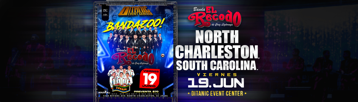 **Attend BANDA EL RECODO Y BANDA ZARAPE at Titanic Event Center, North Charleston, SC, United States** Join us for BANDA EL RECODO Y BANDA ZARAPE. It's going to be a fun and relaxed event with great music and good company. A perfect way to spend your evening. **Event Details:** * **Location:** Titanic Event Center, North Charleston, SC, United States Claim your ticket to be at the forefront of exciting innovation. #BANDAELRECODOYBANDAZARAPE #event #exciting #North CharlestonEvents #SCEvents