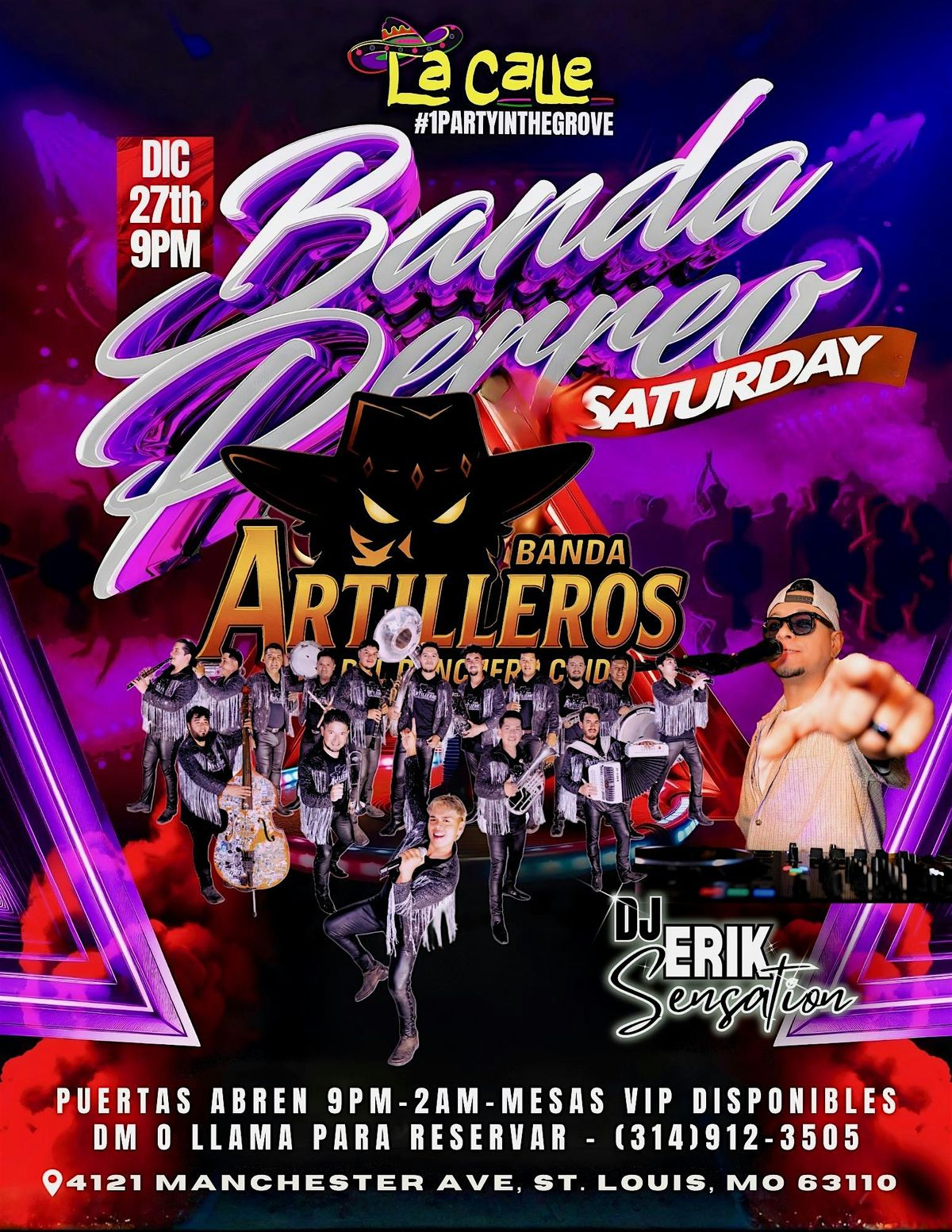 ¡Prepárate para una noche inolvidable y llena de ritmo! Ven a disfrutar de un duelo musical en vivo entre la potente Banda y el ritmo pegajoso del Reggaeton. Con ARTILLEROS y Erik Sensation en el escenario, la fiesta está garantizada. No te pierdas esta experiencia énfasis y en persona, perfecta para bailar y pasarla chido con tus amigos. ¡Te esperamos!