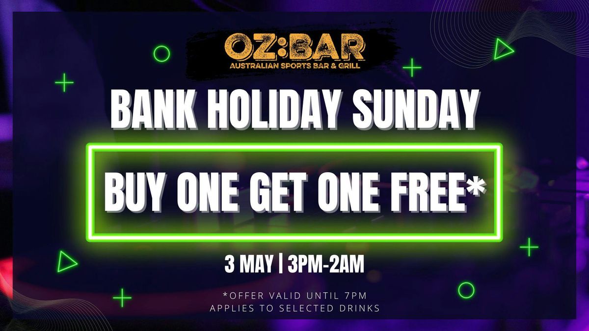 Get ready for a massive Bank Holiday Sunday at OZ:BAR! Weβre open from 3pm-2am so youβve got all day (and night) to celebrate in style πΉπ. Best part? Free entry β all day long πͺβ¨! No tickets, no hassle β just good vibes and great company ππ.Start your day right with our Buy One Get One Free drinks offer until 7pm π»βπ» β whether youβre into spirits, pints, or wine, weβve got you covered. Bring your crew, grab a booth, and make it a day to remember π―ββοΈπΎ!