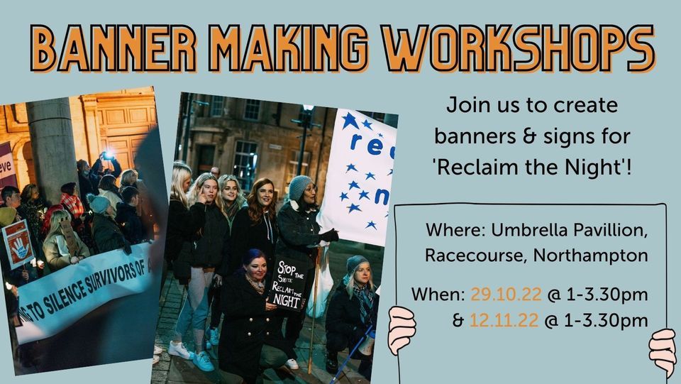 Join us at the Umbrella Pavillion on the Racecourse, Northampton to make signs and banners for this year's Reclaim the Night march!Everyone welcome