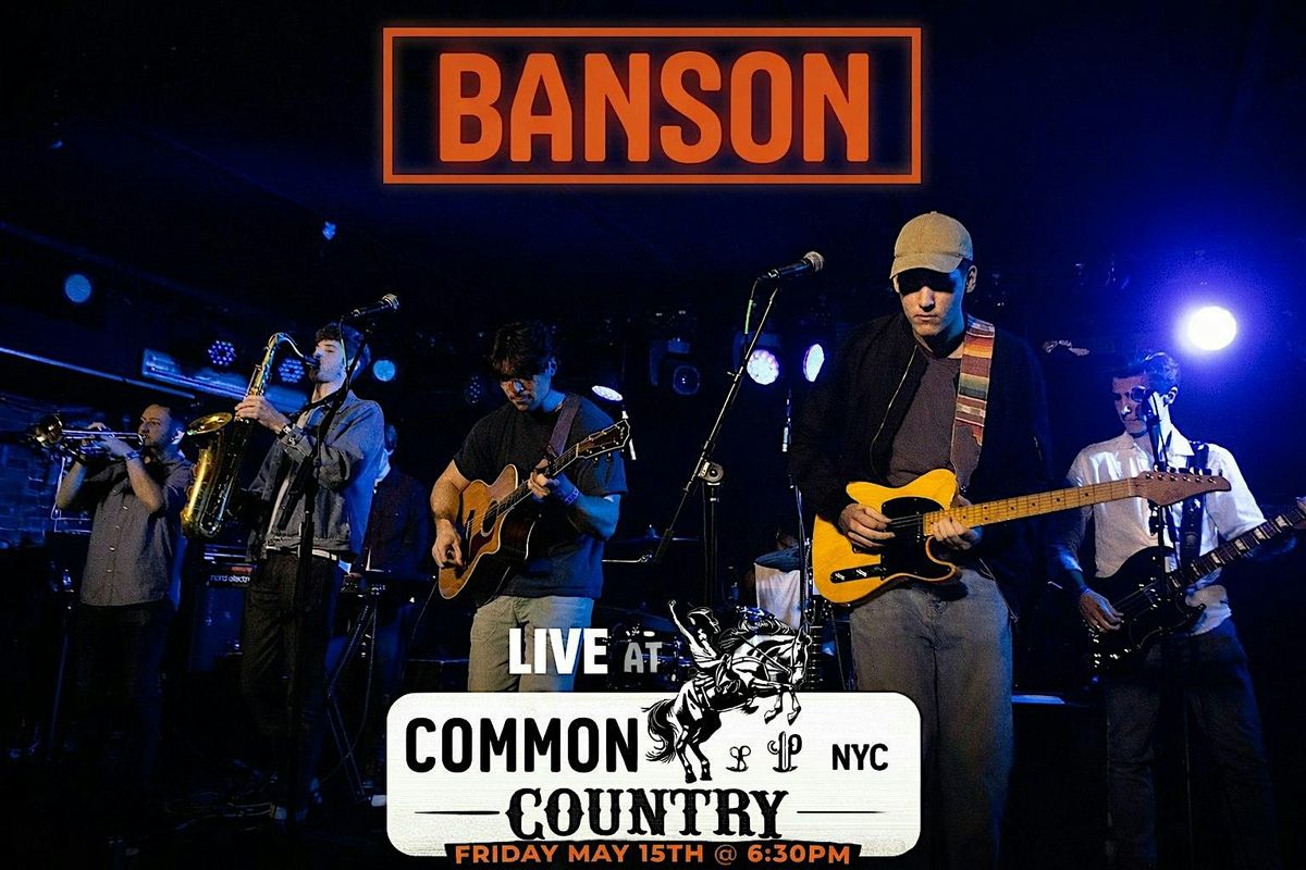 Banson, a New York folk-rock band, is bringing their 8-piece band of brass horns, fiddles, guitars, keys, and drums to Common Country for one night only with no opener. Friday night, May 15th at 6:30pm they're gettin' 4 in the Yard and playing all their originals. Get tickets now before they sell out. 21+.