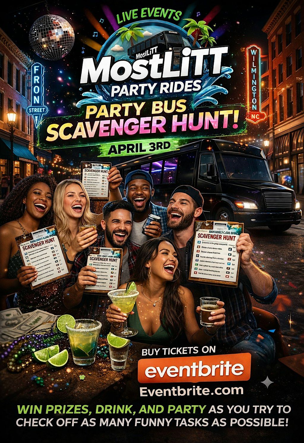 Get ready for a evening of fun, laughs, and unexpected challenges as you take a ride on the most fun party bus in town and hop between your favorite local bars in downtown wilmington! Team up with friends, solve clues, and discover secret spots while enjoying great vibes and tasty drinks. This in-person event is perfect for anyone who loves adventure and a good time. Don’t miss out on the ultimate bar crawl experience with a twist!