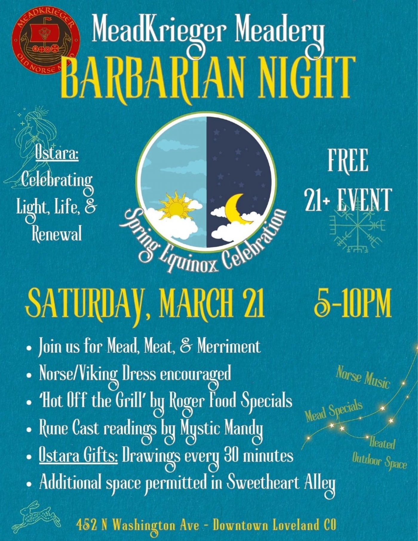 Celebrate the Spring Equinox with us at MeadKrieger Meadery’s Barbarian Night