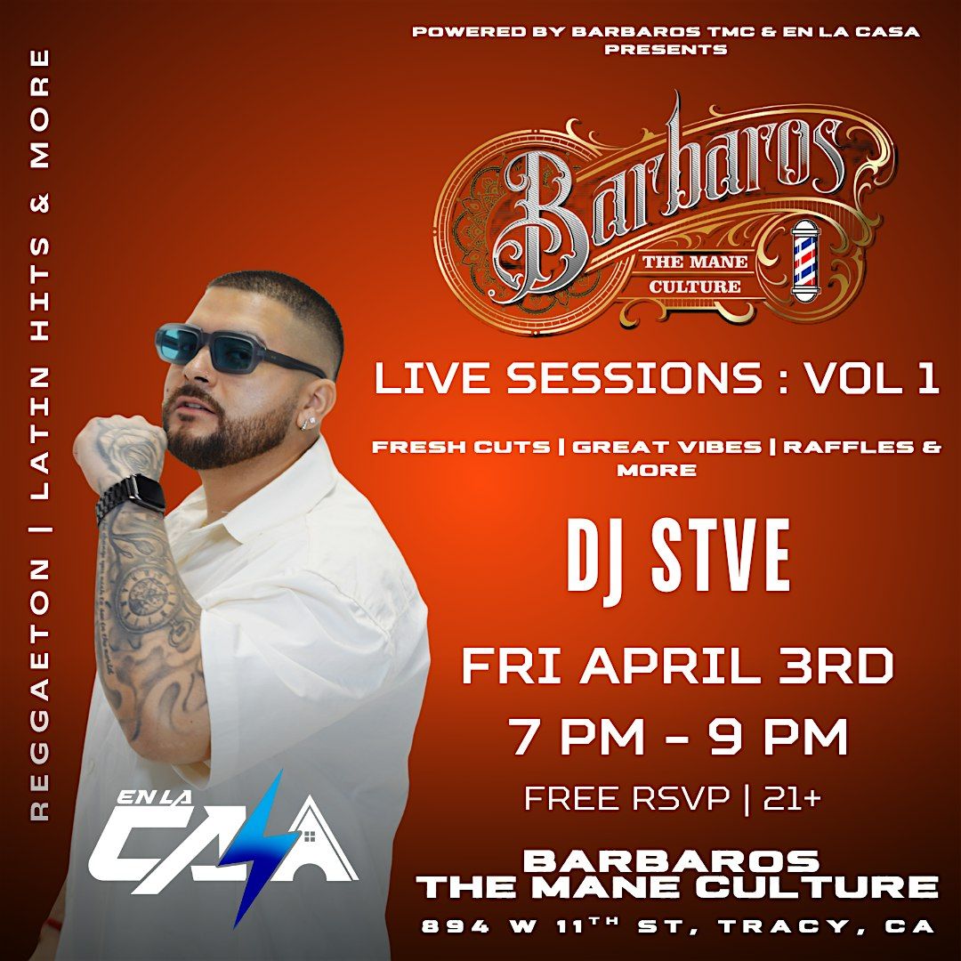 Get ready for an epic night at Barbaros The Mane Culture! Join us on Friday April 3, 2026 at 7:00 PM for the first session of our ALL NEW Barbaros Live Sessions featuring the one and only DJ STVE. Expect great vibes, killer latin beats, complimentary food & drinks, giveaways & more. Don’t miss out on this in-person event that’s all about good music and good times. Bring your friends and let’s make it a night to remember!