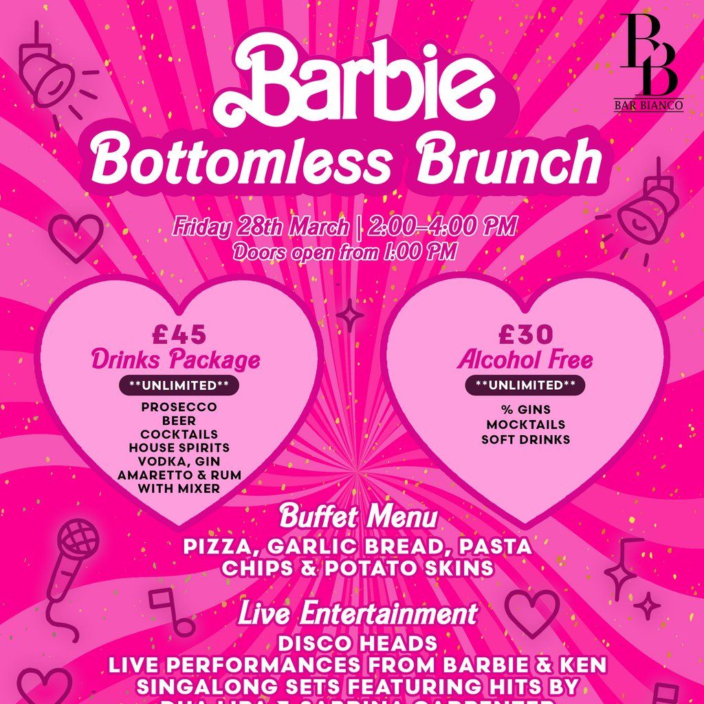 Get ready for a pink-powered afternoon of 2 hours of unlimited drinks, buffet food, live entertainment & singalong hits, with full Barbie energy!