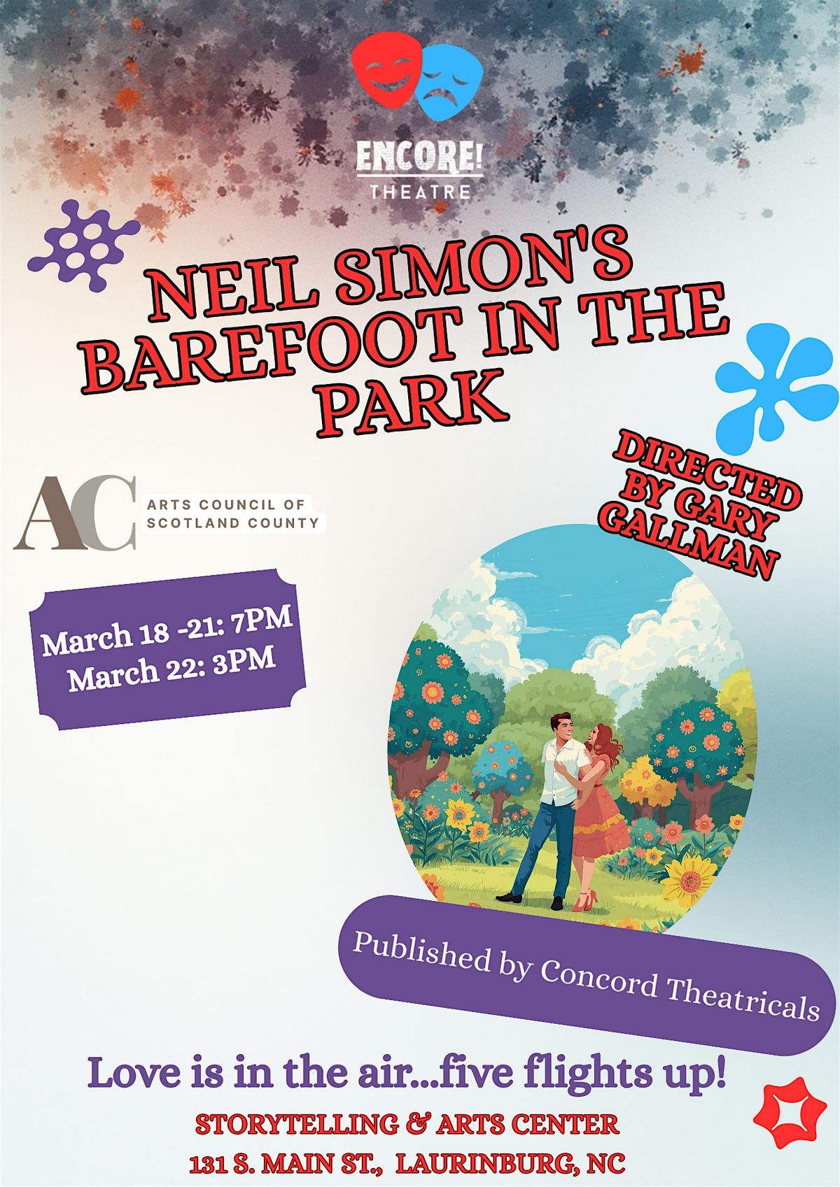 Join us for Barefoot in the Park, an American classic! You won't want to miss this exciting show!
