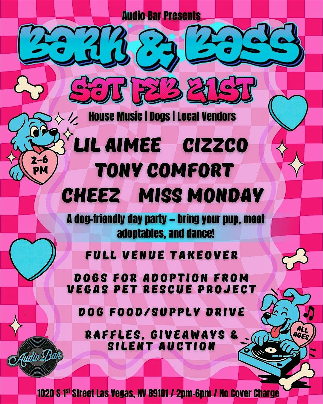 Our first Bark and Bass of 2026 is kicking off Saturday Feb 21st 2pm-6pm at Audio Bar in the Arts District of Las Vegas!